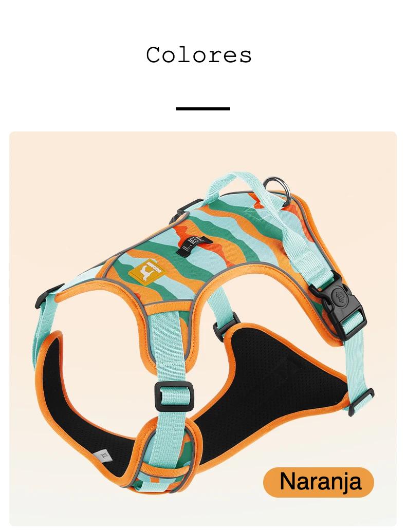 Arnés antitirones para perros grandes con sistema antiescape, amortiguación y diseño reflectante. Material Oxford, malla transpirable y ajuste seguro. Ideal para paseos y exteriores. Tallas S–XL.