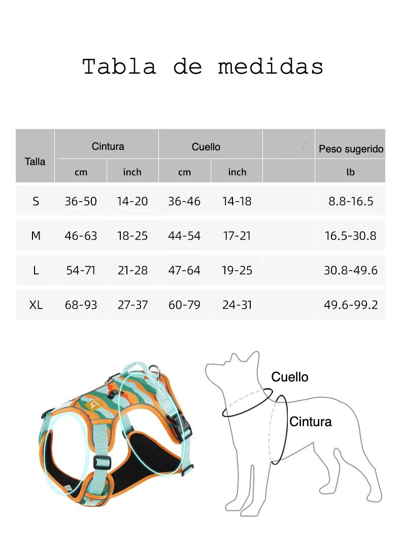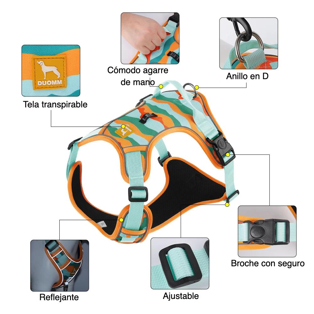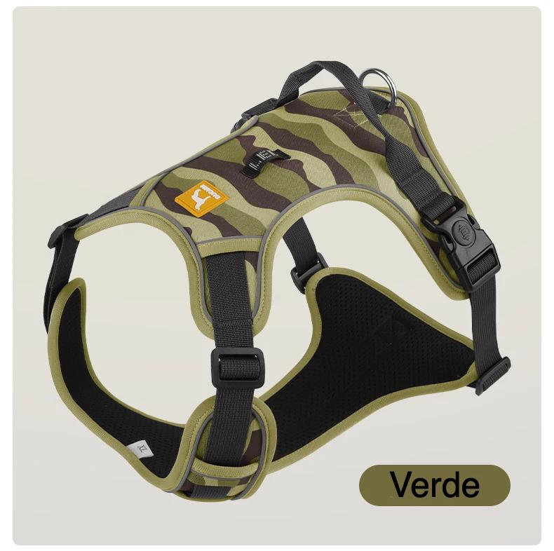 La tela Oxford resistente y la malla transpirable permiten un uso cómodo en cualquier temporada, mientras que los detalles reflectantes aumentan la visibilidad en paseos nocturnos. Su estilo de camuflaje militar aporta un toque deportivo y funcional, ideal para razas como Pastor Alemán, Pitbull, Labrador, Golden Retriever, Husky y más.